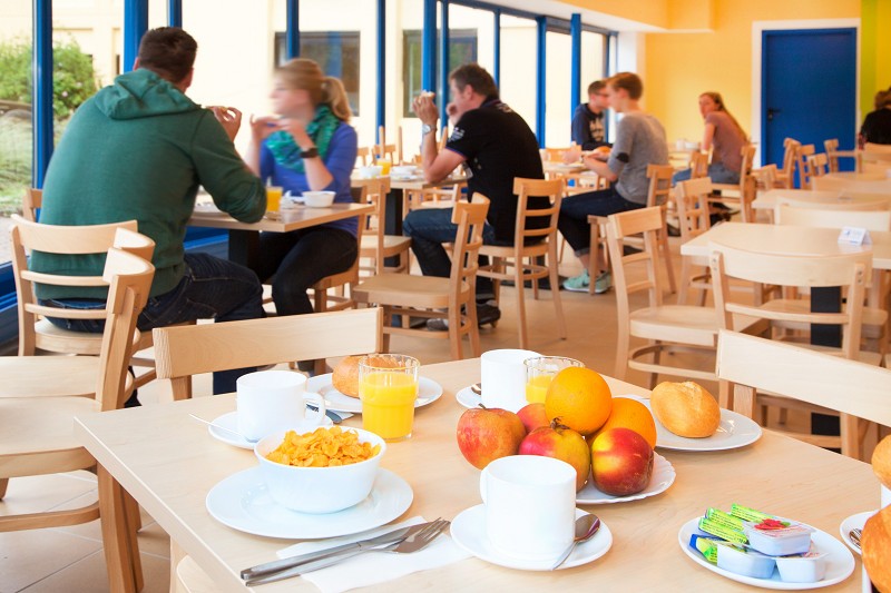- Getränke: Milch, Kaffee, Tee, Kakao, Apfelsaft, Orangensaft, Pfirsich-Eistee, Wasser