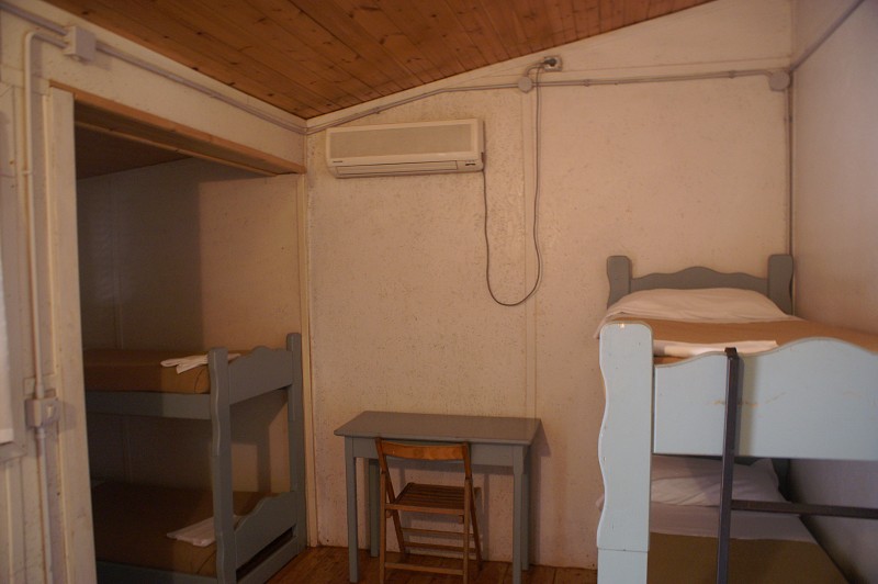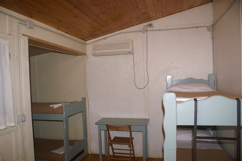 Einfache Holzbungalows: Im Herzen des Country Club Castelfusano, im Schatten der jahrhundertealten Mittelmeerpinien, weitläufig verstreut, befinden sich die 420 Vierbettzimmer in Holzbungalows, alle ausgestattet mit 2 Etagenbetten, WC, Dusche, Kühlschrank, Heizung, Klimaanlage, Safe und Veranda.